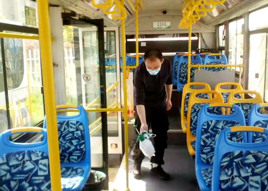 罗江波:每天发车间隙,罗江波将车缓缓停进车位,随后拿起消毒喷雾对车厢消毒、填写消毒台账、给车厢通风,整套动作流畅娴熟。罗师傅说:“公交车作为公共交通工具,人员流动性大,给车厢消毒和通风是每天必做的事情,而且消毒是有标准的,要按照要求来”。“十米”的车厢,罗师傅每天来来回回喷洒消毒水,每天重复的消毒工作罗师傅没有一丝怠慢,带头做好防疫工作就是对乘客健康最好的保障。