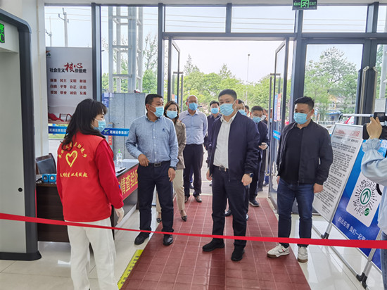 4月28日下午,广德市市委书记周其红带队到广德城乡公交公司检查指导“五一”节安全生产及疫情防控工作,市交运局局长、运发中心主任等陪同。周其红听取了相关工作汇报后强调,要严格按照疫情防控要求,确保各项防疫措施落实到位,确保节日期间车辆平稳有序运营。(李红芳 梁金 文/摄)