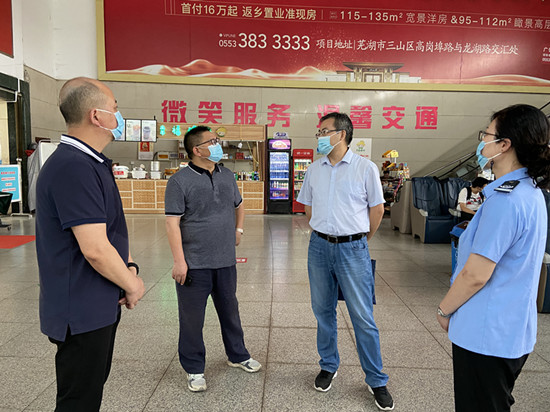 6月23日上午,由省交通执法局徐侠任组长的省交通运输厅安全督导组一行来安徽运泰芜湖汽车站检查,站长李汝福等陪同。督导组一行先后来到售票厅、候车厅、停车场、办公楼,详细了解车站的安全管理、疫情防控等工作开展情况,并查阅了安全管理相关资料台账。督导组一行对芜湖汽车站相关工作表示肯定,希望该站再接再厉,做好暑运相关工作。(吴乐鹏 文/摄)