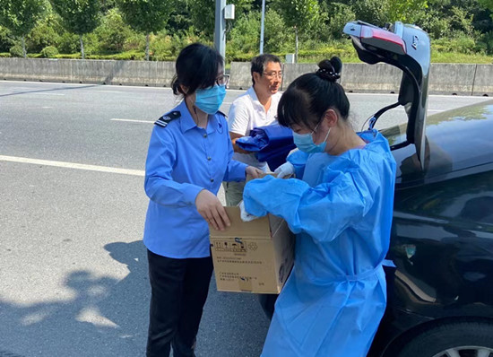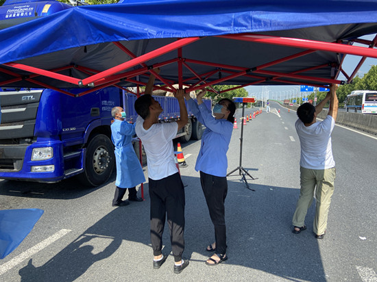 安徽运泰芜湖汽车站助力我市疫情防控高速路口查验工作已超过两个月时间,近期天气炎热,气温一度达到39度,部分志愿者们仍坚持在一线,他们用汗水为我市筑起一道疫情防控坚实的屏障。 7月11日下午,该站安排人员来到高速卡口,安装遮阳伞改善工作环境,并慰问志愿者,为他们送去毛巾、风油精、仁丹等防暑降温用品。(吴乐鹏 文/摄)