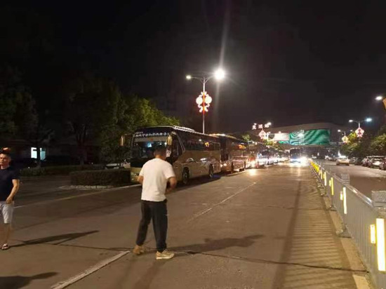 7月15日晚,运泰涉外公司接市交通局、卫健委指令,临危受命,立即组织车辆人员赶往怀远开展疫情转运工作。在湾沚、南陵、繁昌、候机楼分公司等兄弟单位大力支持下,紧急抽调的20台大巴于22:30前往疫区。至7月16日中午,经一夜奋战,疫情转运车队顺利将1000名密接人员安全送达各隔离点,当晚仅休息半天时间再次执行转运任务,运送900名密接人员。为在炎炎夏日奋战一线的驾驶员师傅点赞!(吴丹 文/摄)
