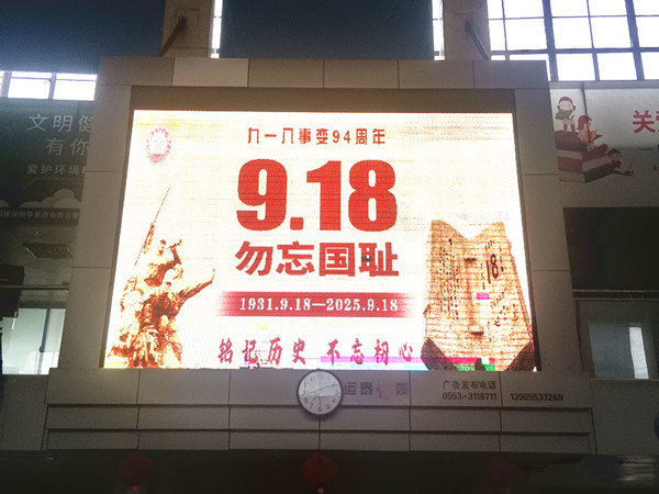 9月18日,在这个承载着民族记忆的特殊日子,芜湖汽车站开展“全民国防教育月”活动,让员工和乘车旅客在这个特殊的时刻接受爱国主义、国防教育洗礼。该站电子显示屏滚动播放“勿忘国耻、警钟长鸣”,“铭记历史、勿忘国耻;砥砺前行、强我中华”等宣传标语,让爱国主义教育、国防教育融入日常生活。(吴乐鹏 陈犇 文/摄)