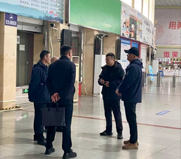 2月6日上午,省安全生产督查组来芜湖汽车站安全检查,安徽运泰分管安全副总经理王胜等陪同。督查组一行先后来到售票厅、安检处、候车厅、停车场等区域实地查看、了解车站行包安检、消防安全管理、消防器材维护更新、安全管理应急预案等安全工作落实情况。督查组对该站春运安全生产工作开展情况给予肯定,要求从严从细落实好汽车站各项安全管理规定,守牢安全底线,强化责任担当,全力保障广大旅客春运期间安全出行。(吴乐鹏 文/摄)