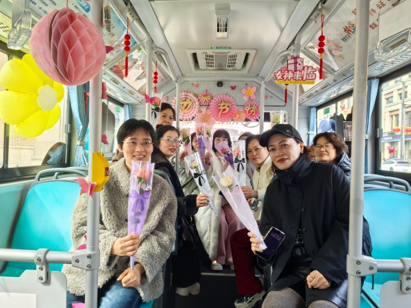 3月8日国际妇女节,广德公交开展“春风送暖,花香满车”主题活动。工作人员精心布置主题车厢,安装鲜花、气球等装饰品,车厢洋溢着浓厚的节日氛围。活动当天,广德公交工作人员和驾驶员为女性乘客送上鲜花和节日祝福。(李晓萌 文/摄)
