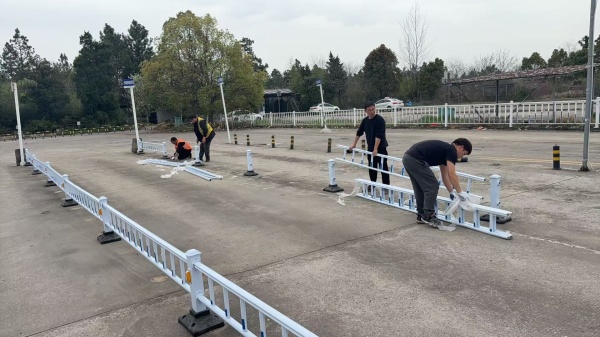 根据《机动车检验机构资质认定评审补充技术要求》规定,机动车检验机构应当合理规划场内行车路线,设置足够的交通标志、交通标线、引导牌、安全标志等。南陵金盾检测公司场地隔离警示栏年限已久,损坏较多,显得比较破旧。为了提升企业形象,节约成本支出,4月2日,南陵金盾检测公司组织员工自行更换隔离护栏设施。(张美 文/摄)
