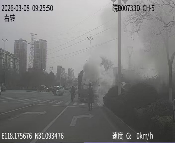 3月8日上午9时23分,运泰繁昌公司公交2路驾驶员许能保驾驶公交车由黄浒返回繁昌城区,途经华阳十字路口时,发现一辆货车停在路口中央,车上浓烟滚滚、火势猛烈,严重威胁道路通行安全。